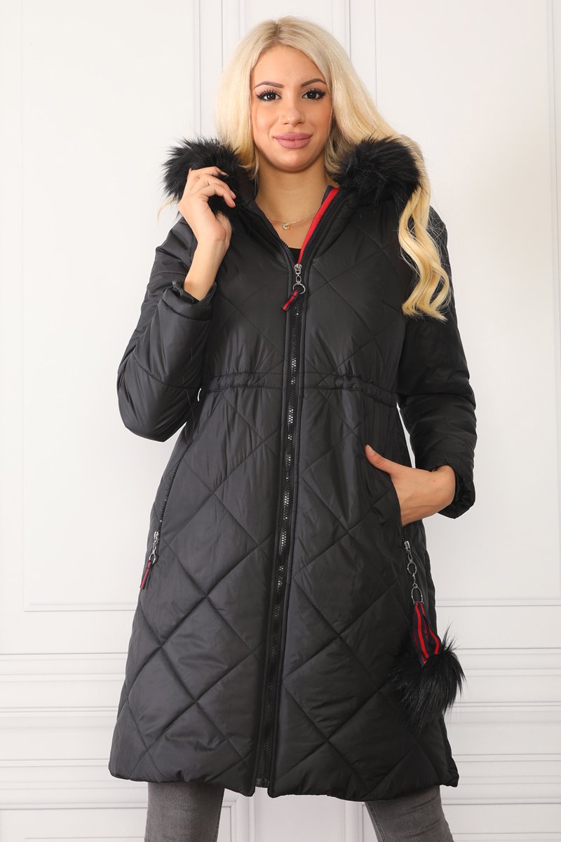 Porta-chaves amovível com pompom em pelo sintético à frente.