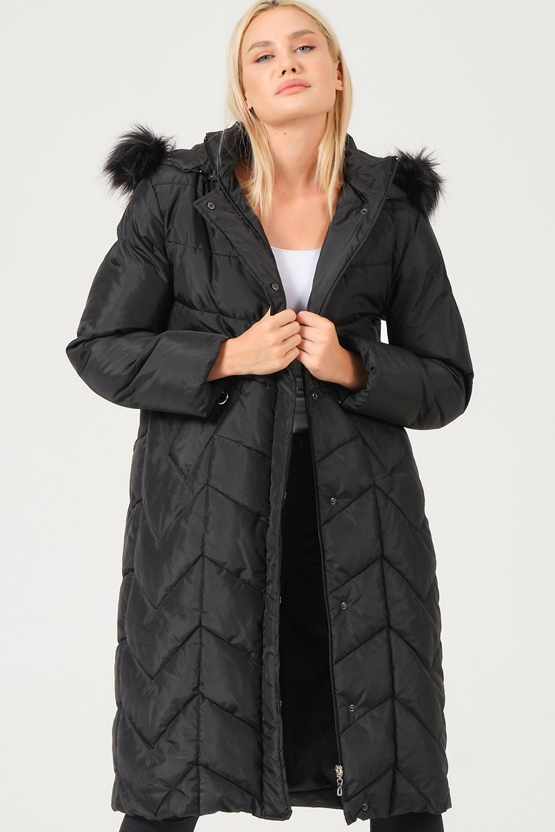 Capuz amovível com pelo sintético.