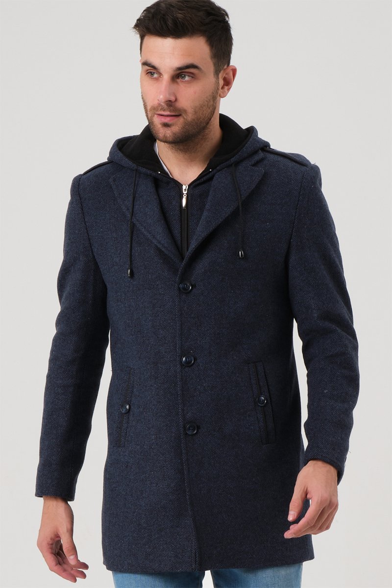 Sobretudo em lã - Azul-marinho mesclado