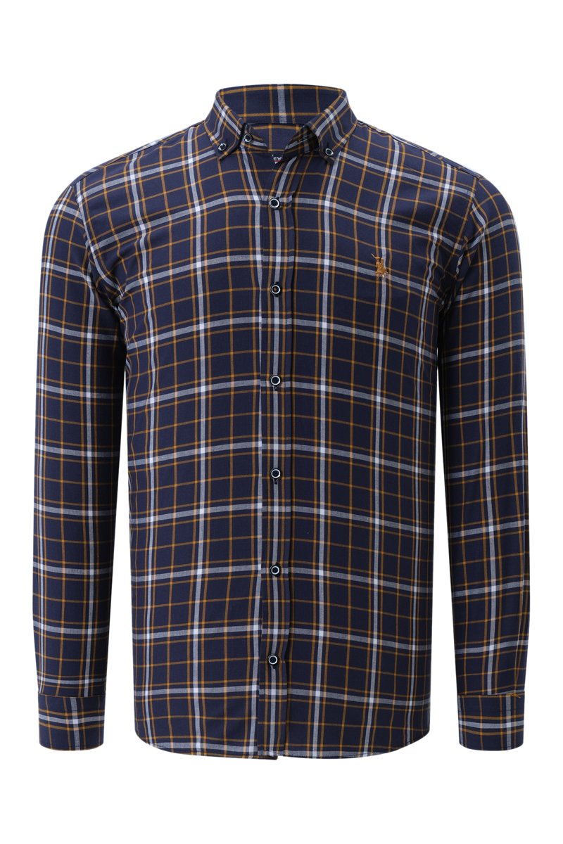 Camisa - Azul-escuro e mostarda