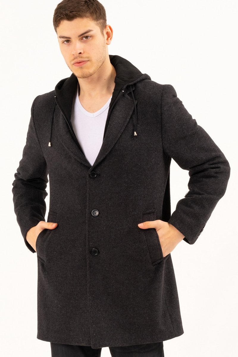 Sobretudo com capuz em lã - Preto