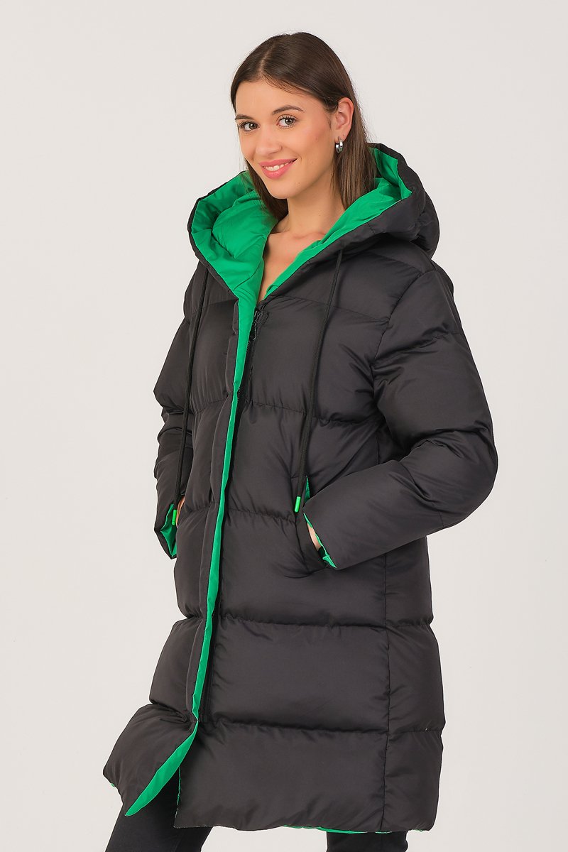 Blusão comprido com capuz - Preto