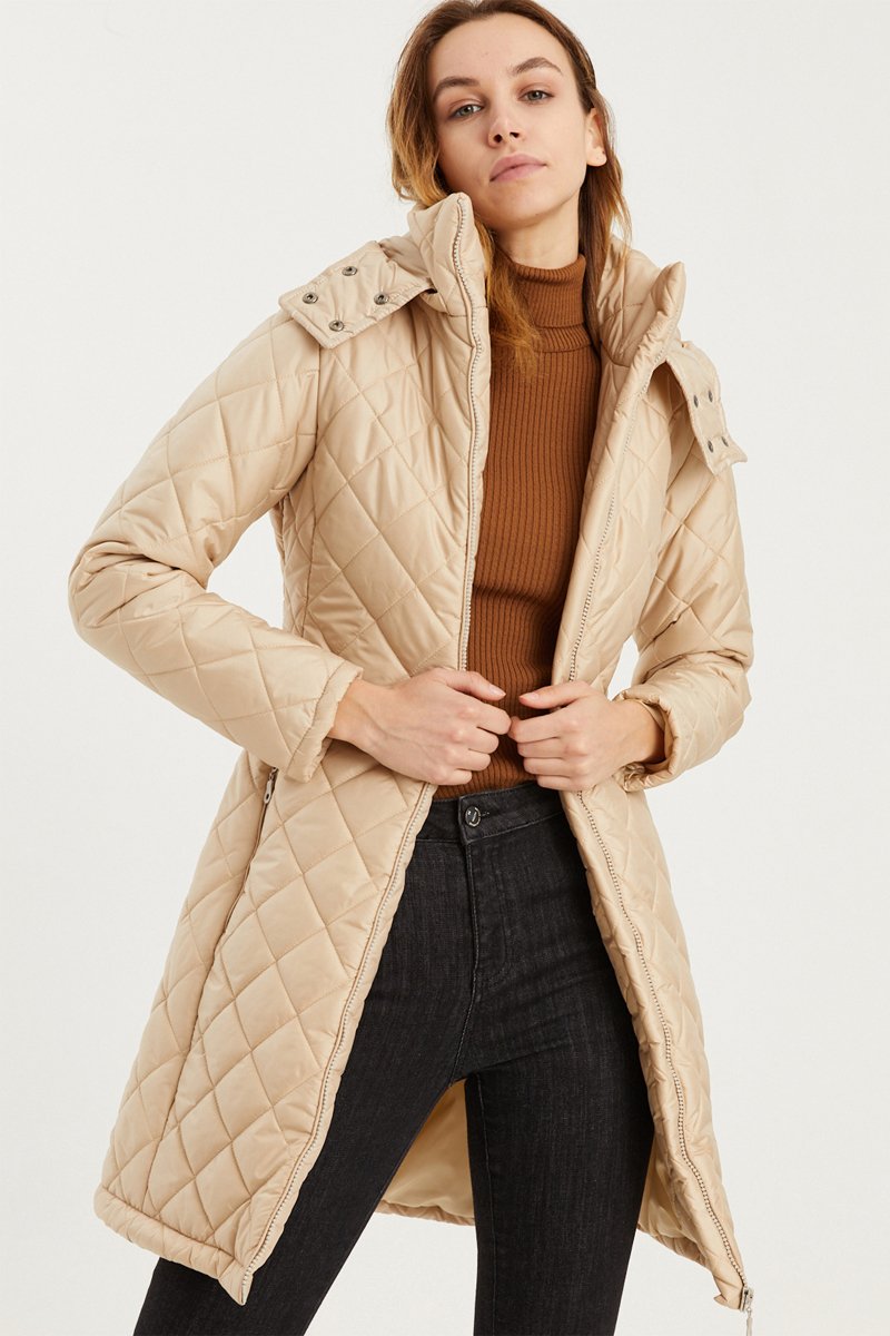 Blusão comprido com capuz - Bege