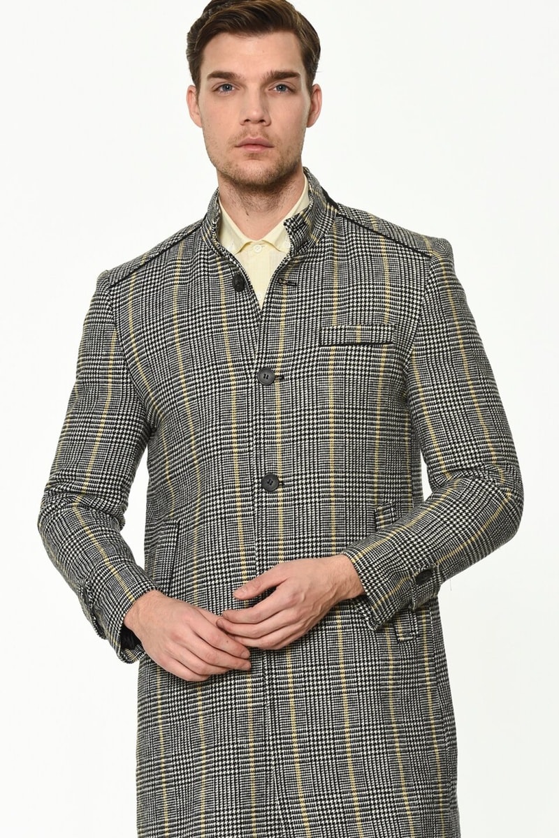 Sobretudo regular em misturada de mangas compridas.