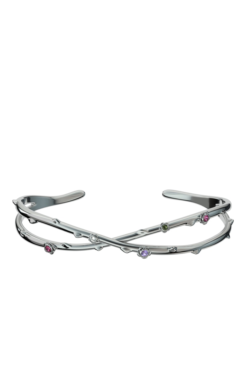 Pulseira rígida - Banhada a ião prata e turmalinas