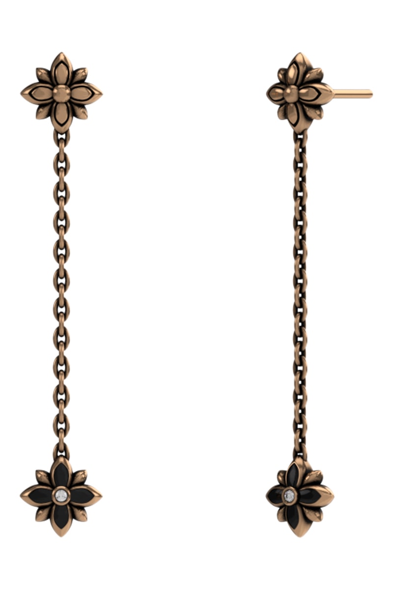 Brincos pendentes banhados a ião ouro rosa com cristais.