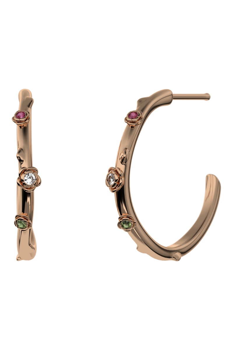 Argolas banhadas a ião ouro rosa com 3 turmalinas.