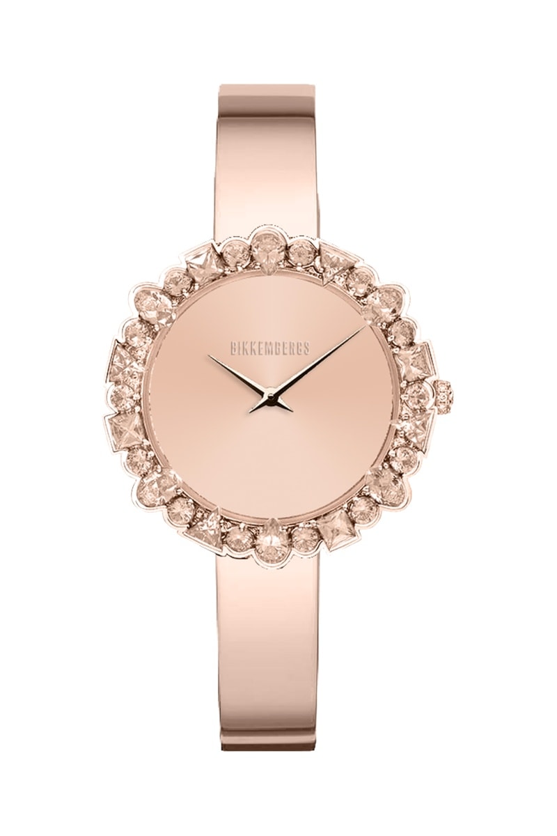 Relógio de quartzo em aço com cristais Swarovski - Dourado-rosa e rosa