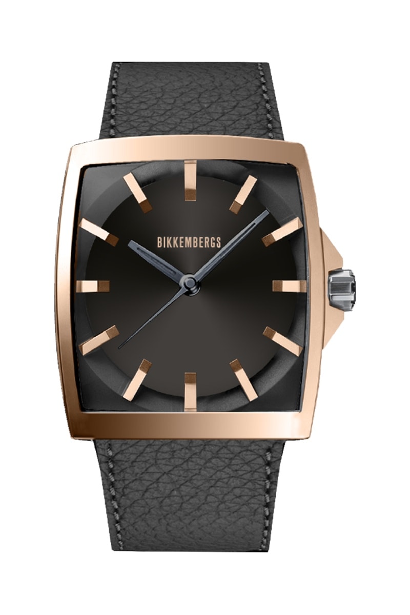 Relógio de quartzo em couro - Preto e dourado-rosa