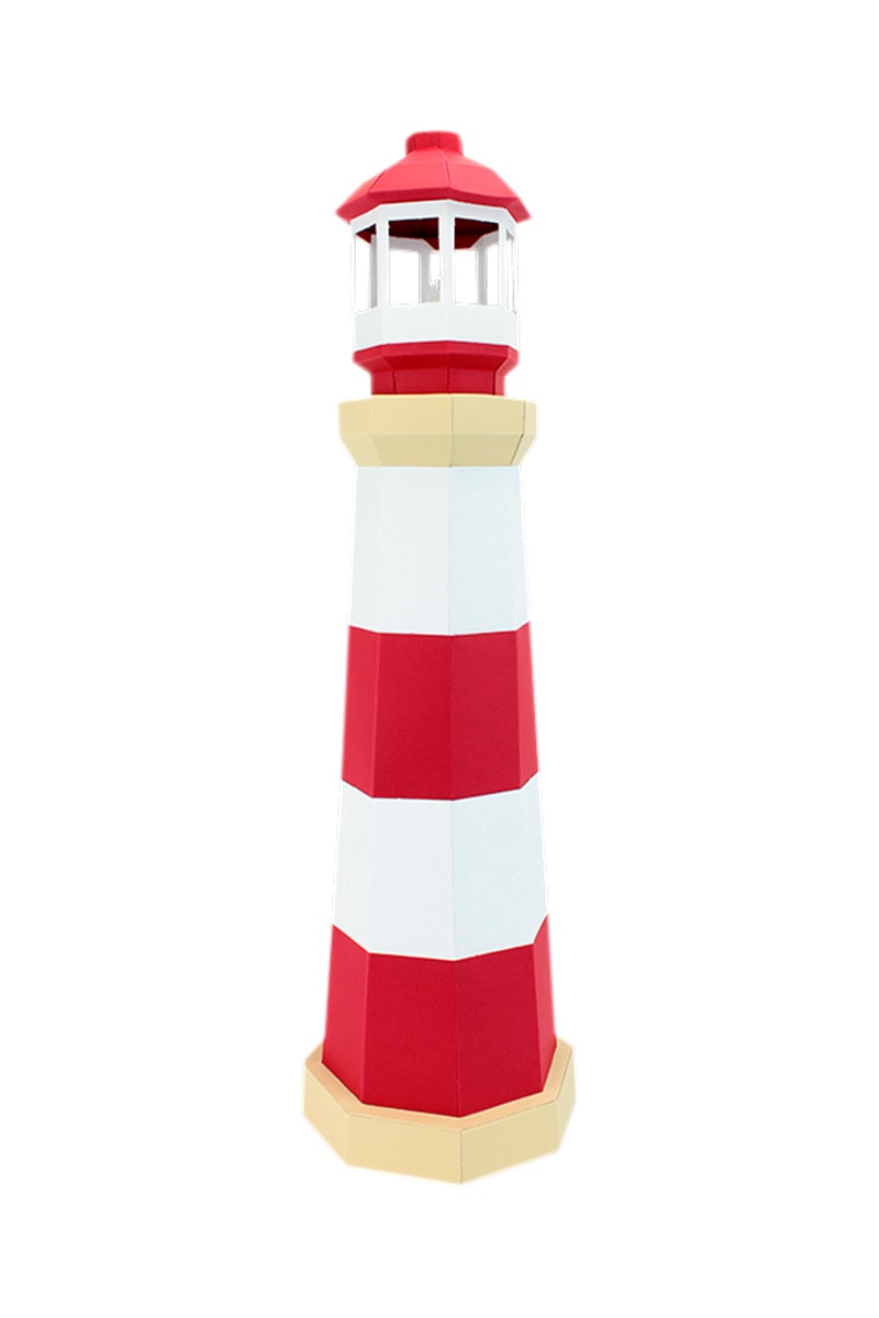 Escultura 3D Farol - 63 x 17,5 x 17,5 cm - Vermelho e branco