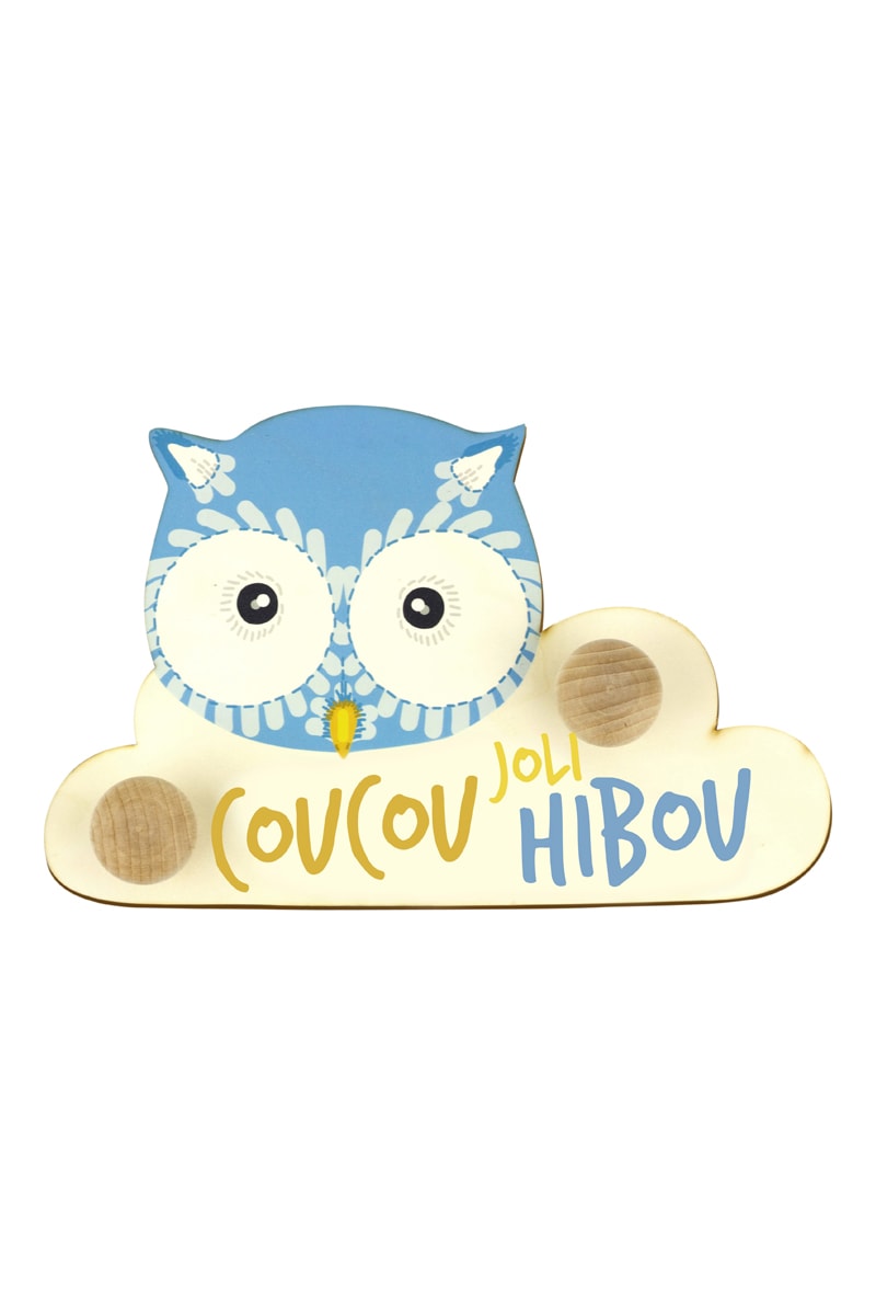 Bengaleiro pequeno troféu Coruja em madeira - 23,7 x 30,6 x 1 cm - Azul-celeste e amarelo