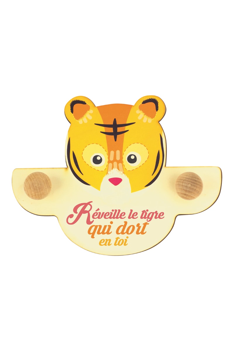 Bengaleiro pequeno troféu Tigre em madeira - 23,7 x 30,6 x 1 cm - Natural e amarelo