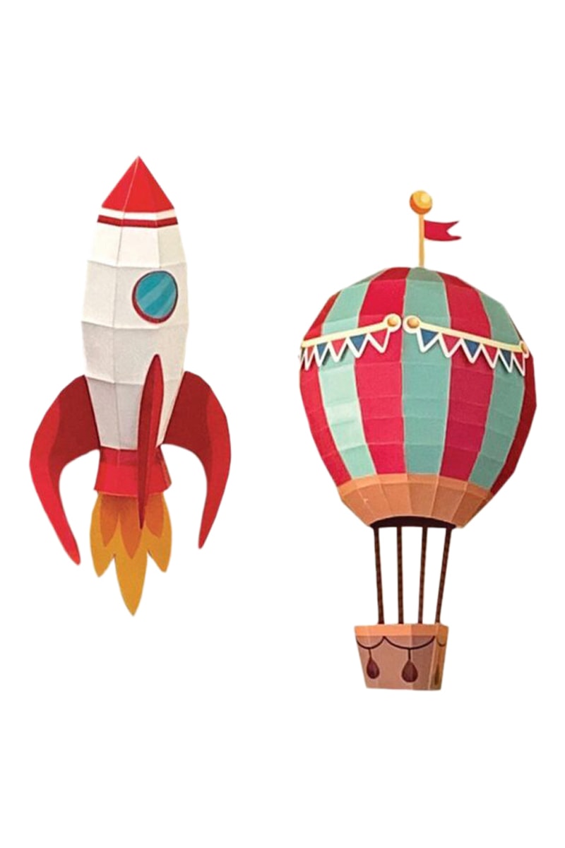 Origami 3D Troféu Easy Peasy Foguetão e Balão de ar quente - 30 x 15 x 6 cm - Vermelho e branco