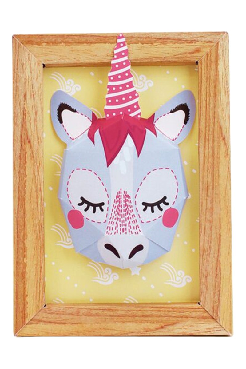 Decoração de parede Unicórnio - 26 x 18,5 cm - Bege e amarelo