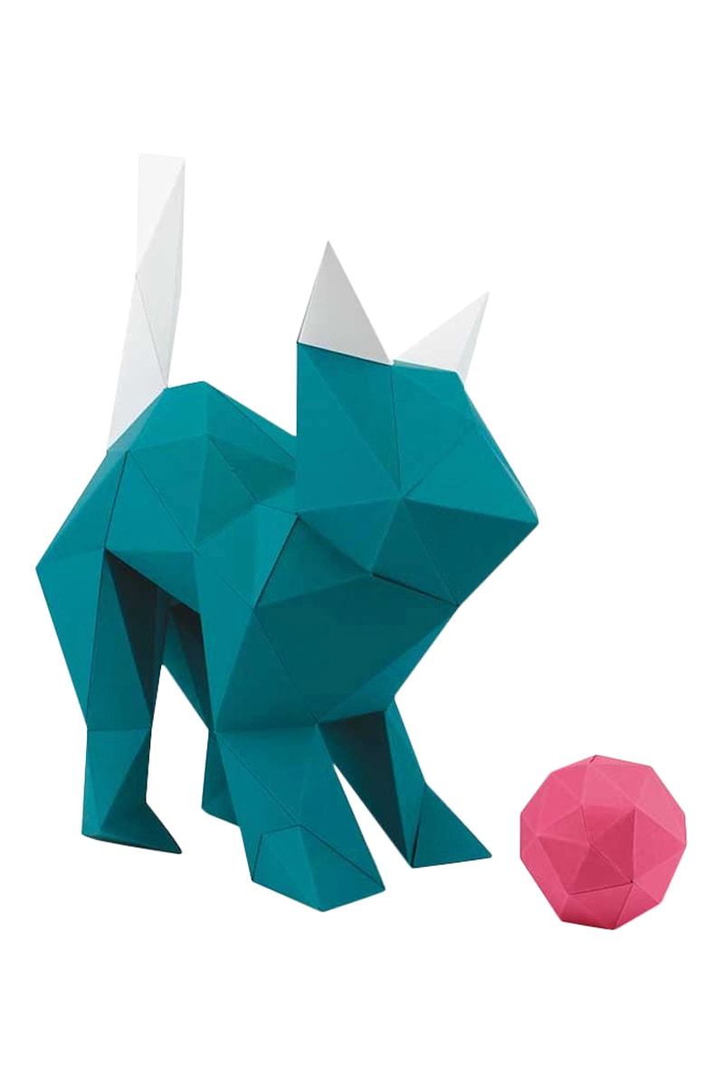 Origami 3D Gato - 42 x 15 x 32 cm - Azul-pato