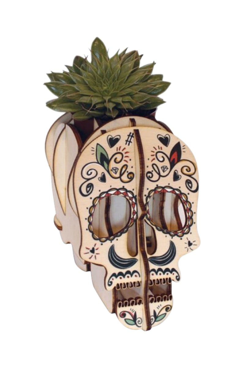 Crânio calavera em madeira de álamo.
