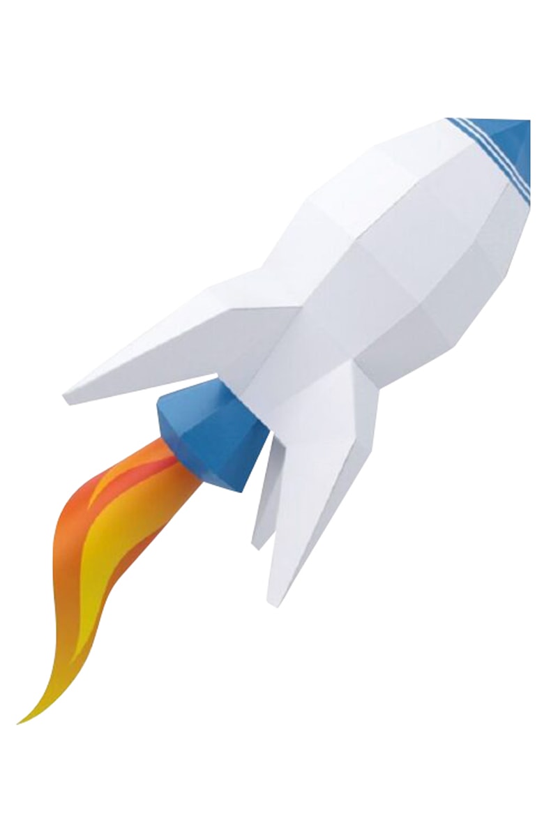 Origami 3D foguetão - 23 x 51 x 23 cm - Branco e azul-cobalto