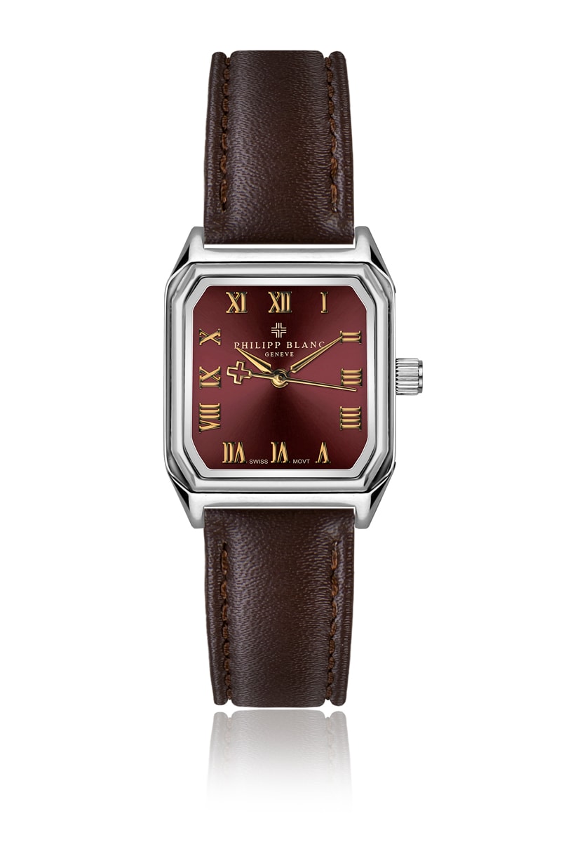 Relógio de quartzo em couro, banhado íon prata e diamante Olympe