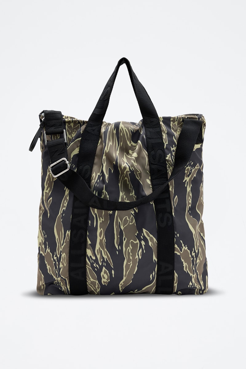 Logótipo nos punhos, na alça a tiracolo e nas alças. Logótipo à frente.