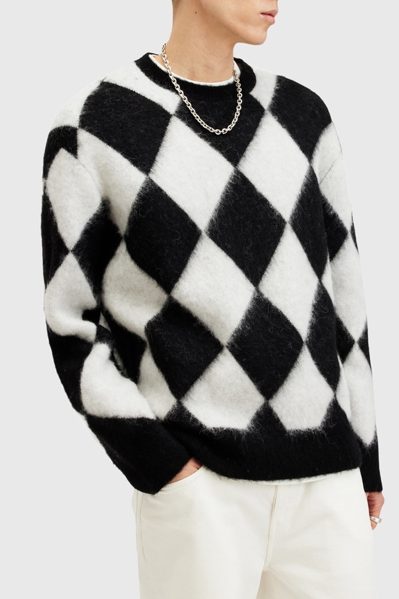 Camisola oversize em alpaga e lã - Preto e branco