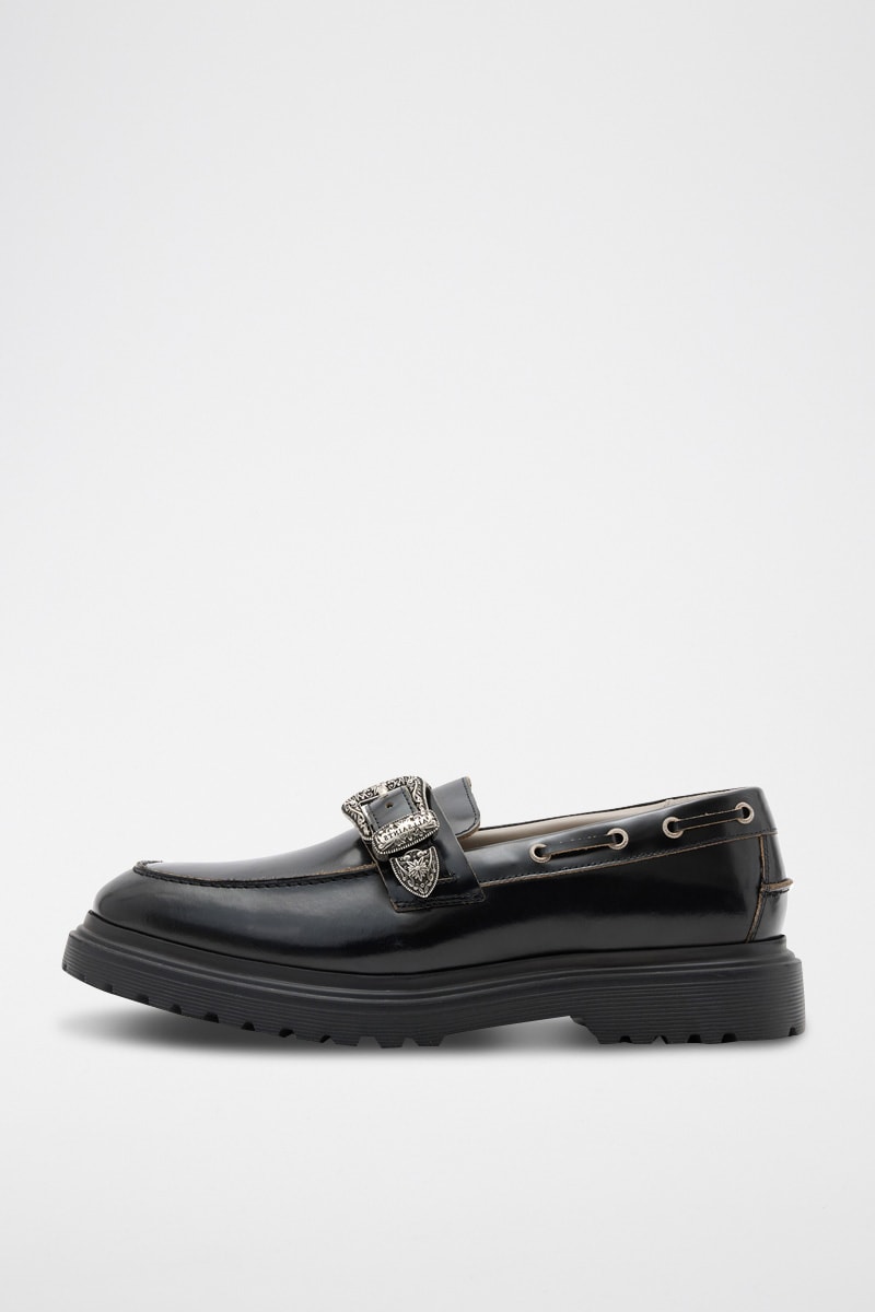 Mocassins com plataforma em couro envernizado - Preto