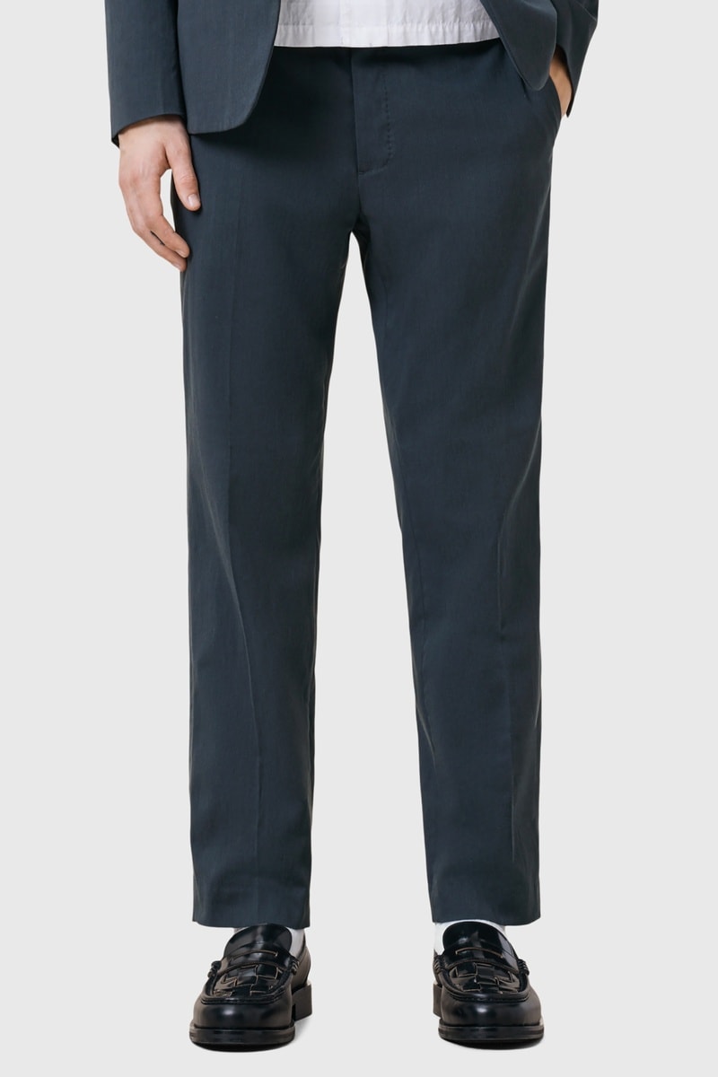Calças de fato em algodão biológico misturado.