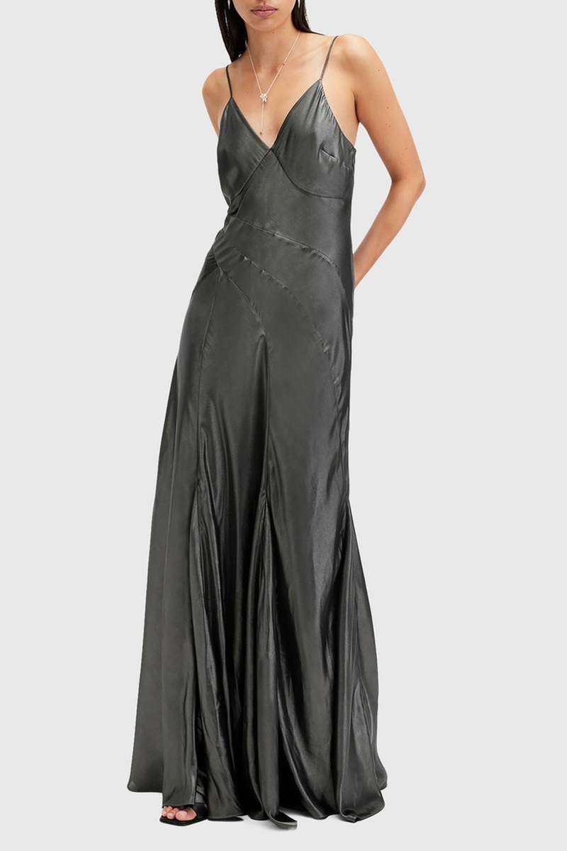 Vestido comprido - Cinzento-escuro