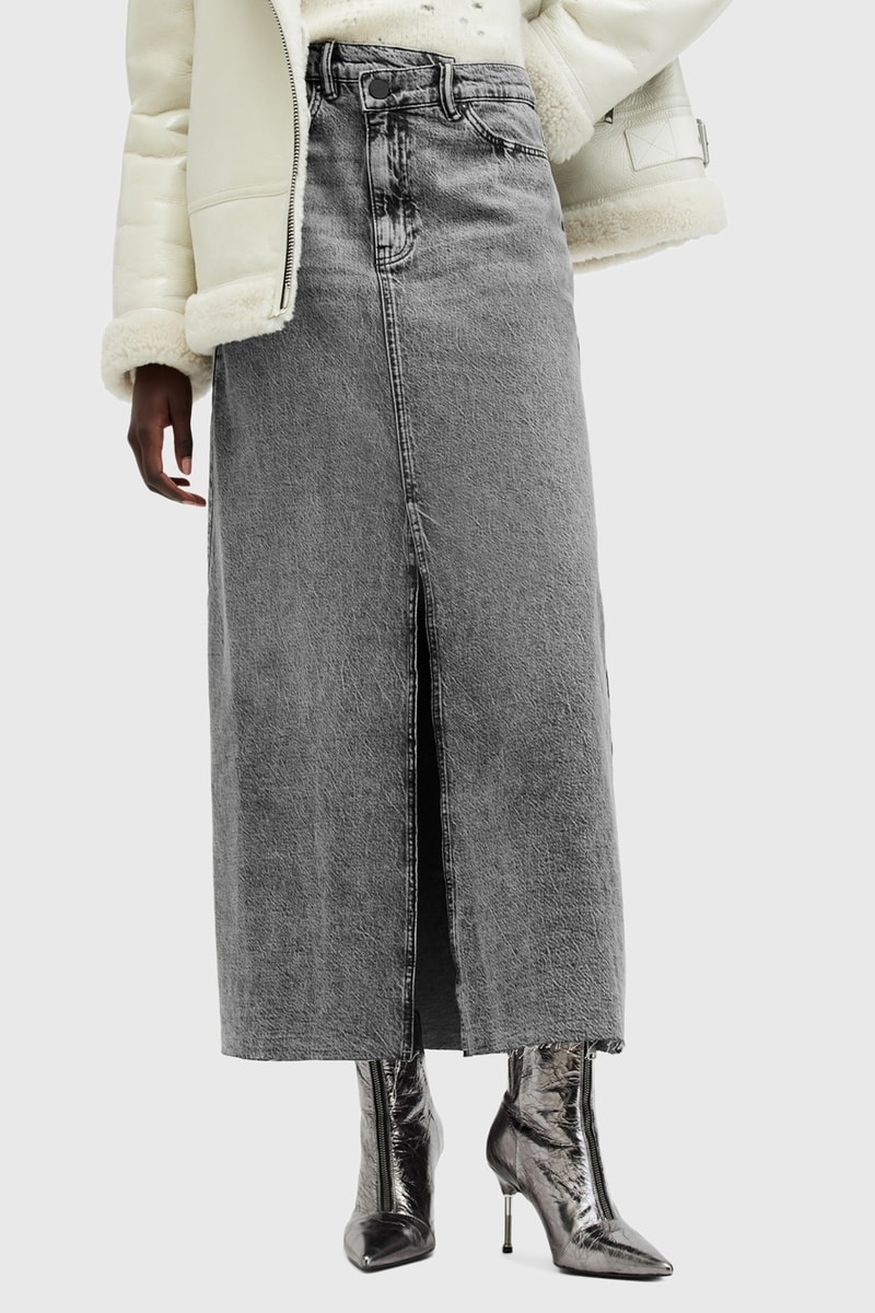 Saia comprida em ganga e em algodão biológico - Cinzento
