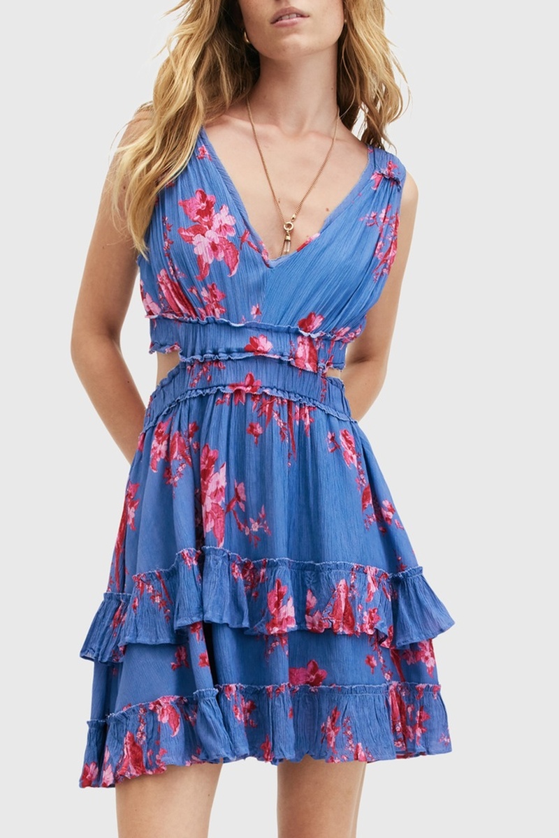 Vestido com folhos - Azul