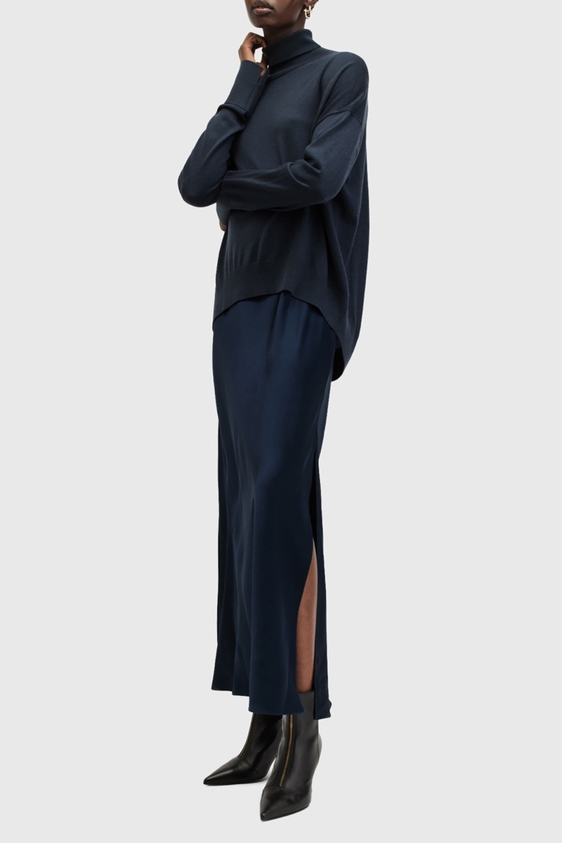 Vestido comprido 2 em 1 em lã - Azul-marinho