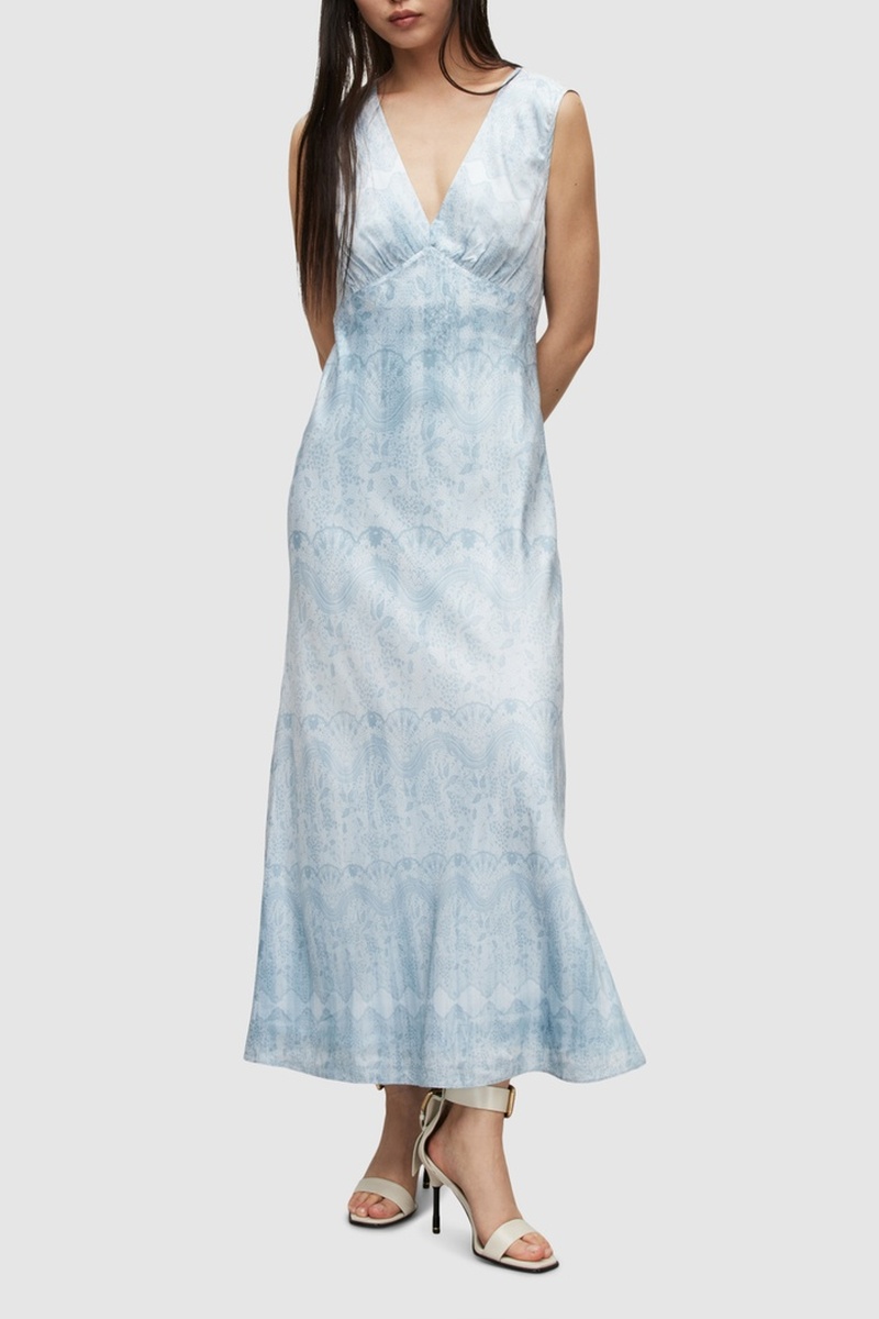 Vestido comprido em seda - Azul-claro