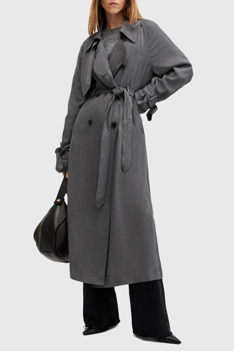Trench relaxed de mangas compridas com atilhos de presilhas.
