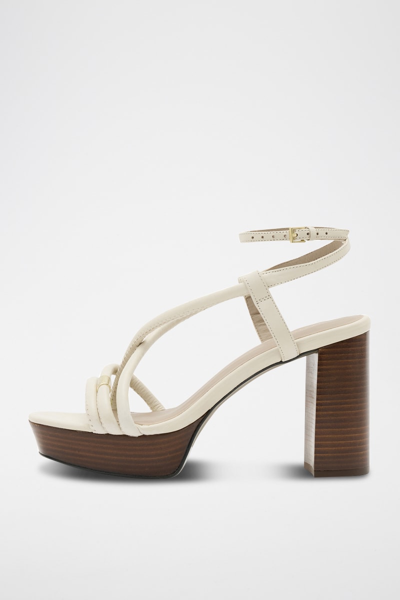 Sandálias de salto em couro - Esbranquiçado