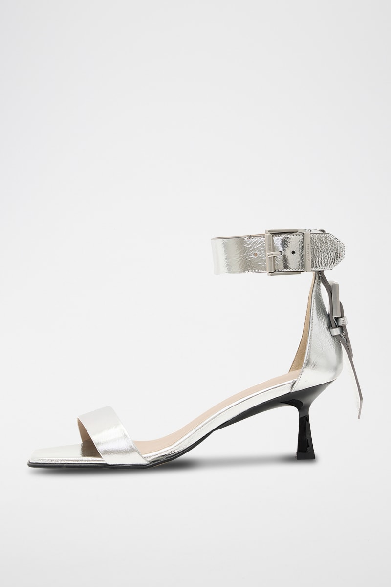 Sandálias de salto em couro - Prateado