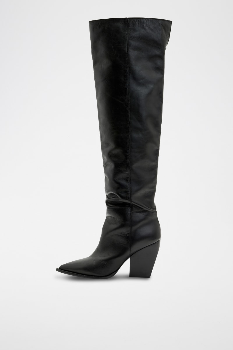 Botas acima do joelho em couro - Preto