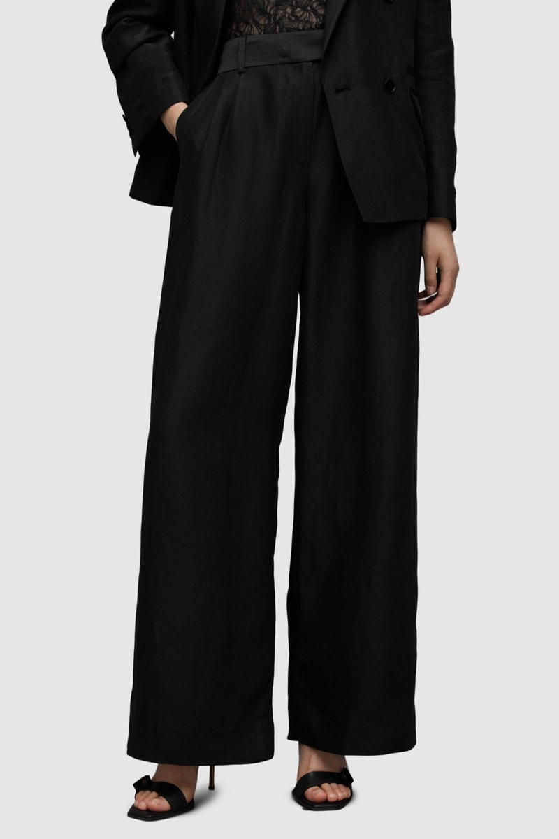 Calças wide legs em linho misturado.