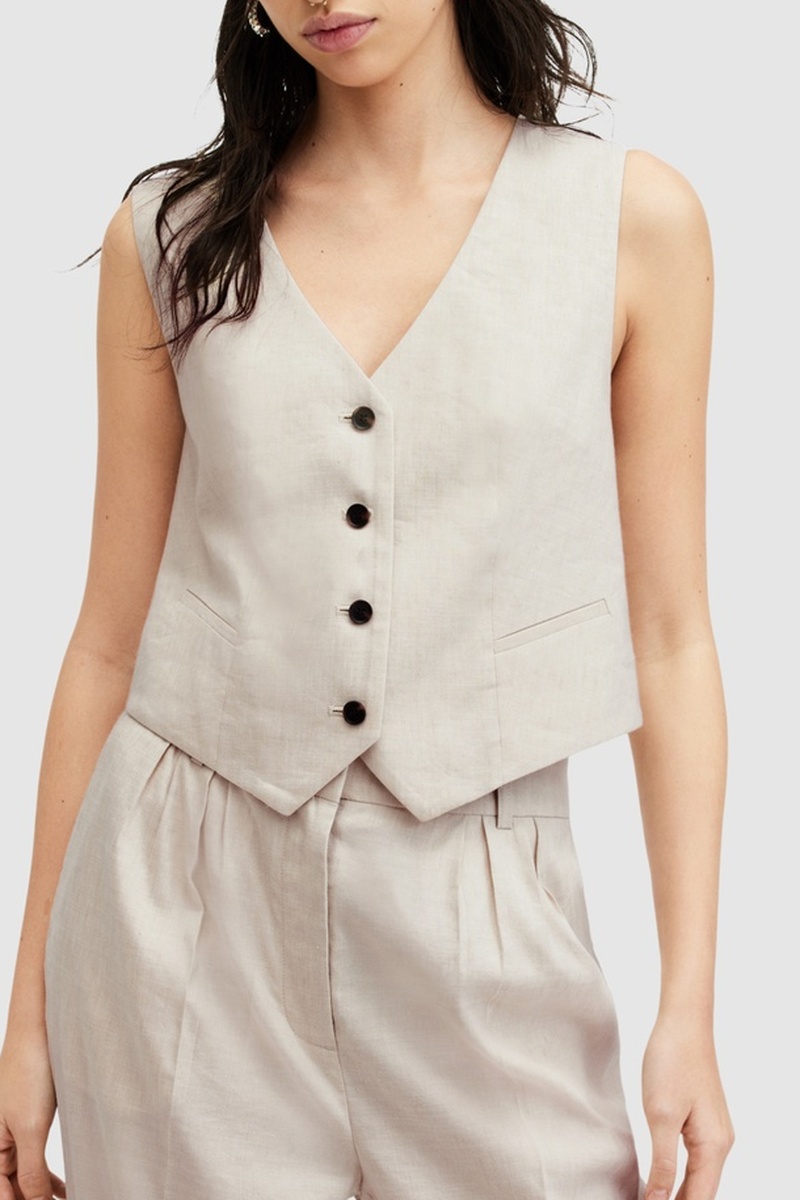 Colete de fato em linho - Bege