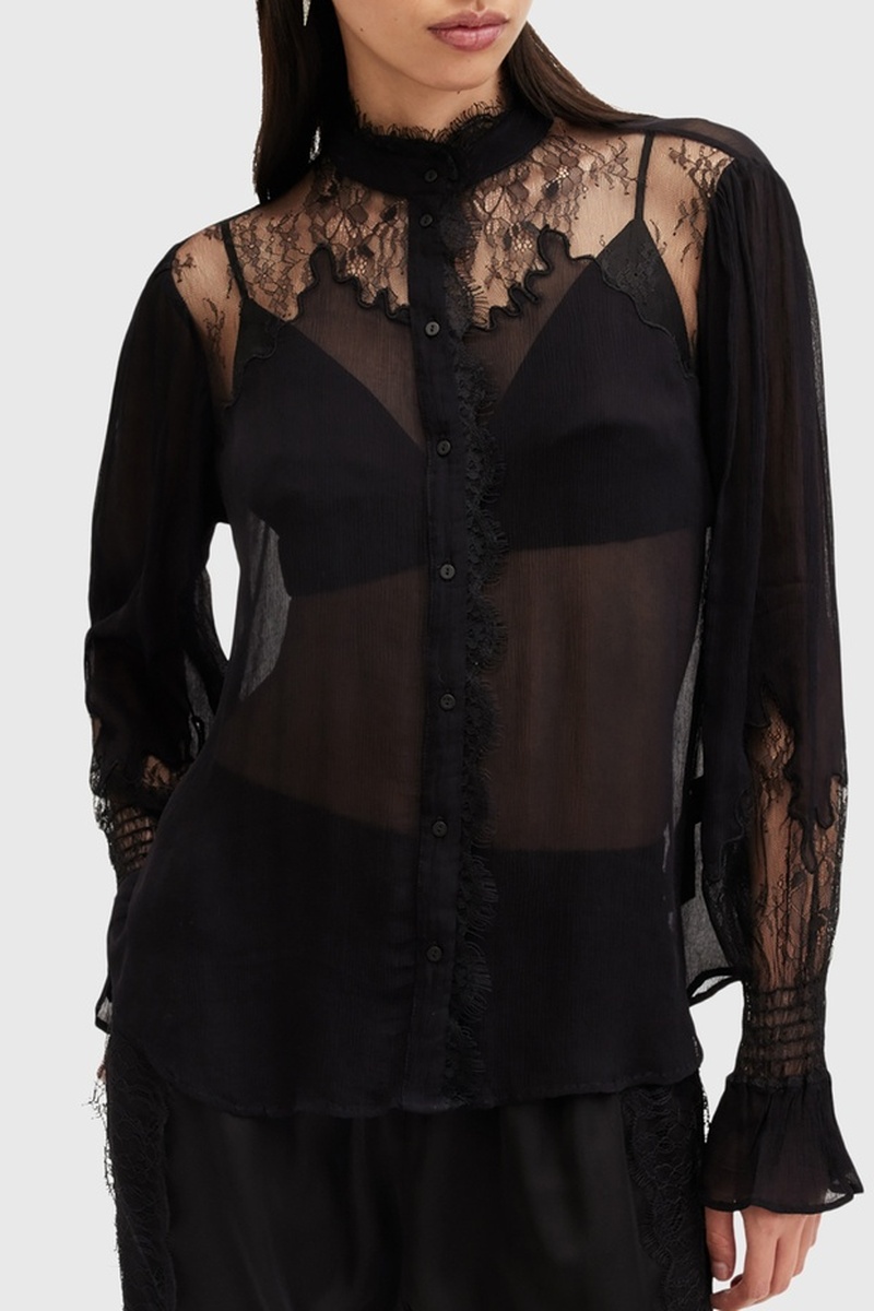 Camisa relaxed em tule de mangas compridas.