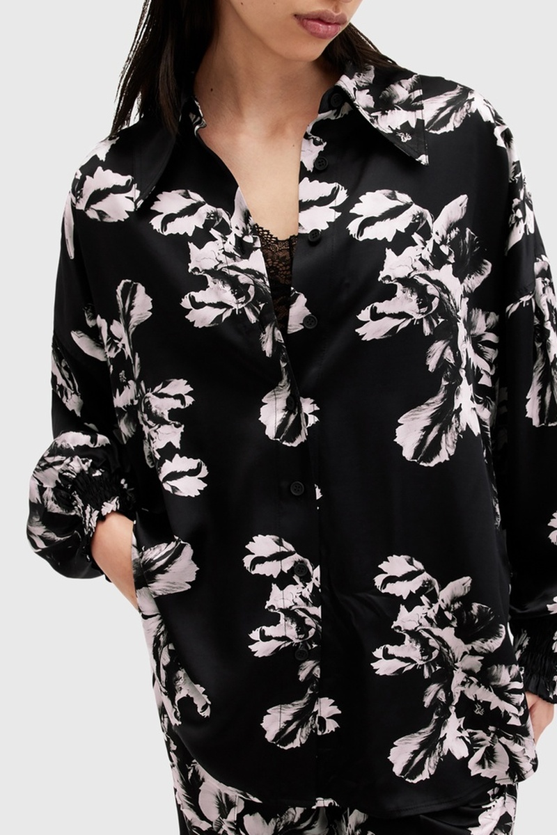 Camisa relaxed em seda - Preto