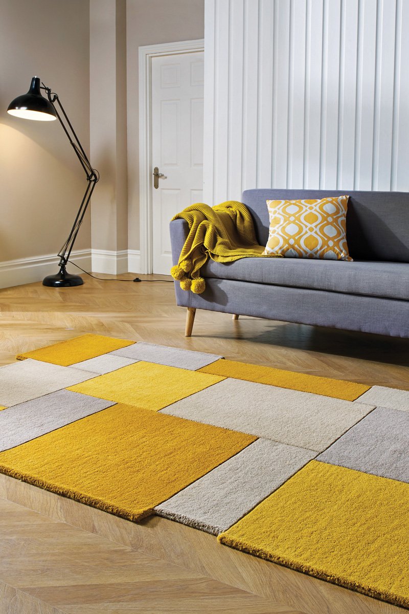Tapete Collage em lã - Amarelo e cinzento - 60 x 230 cm