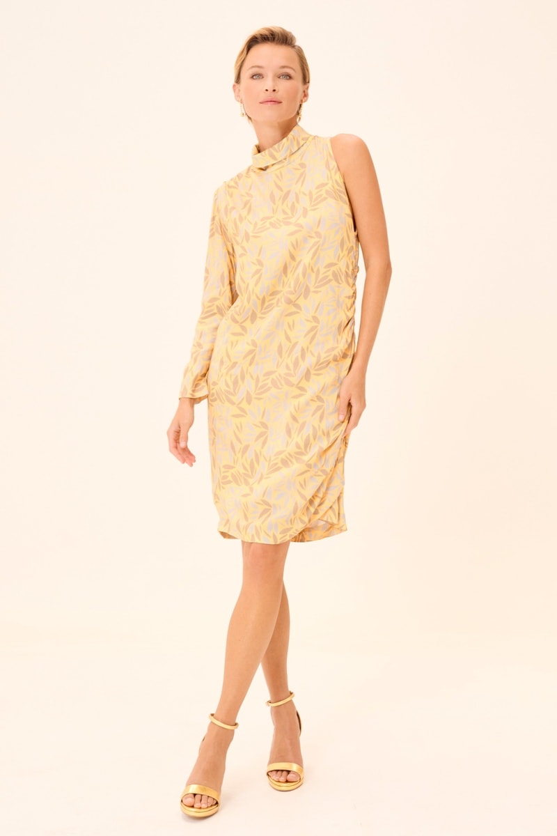 Manga comprida do lado direito e sem manga do lado esquerdo.