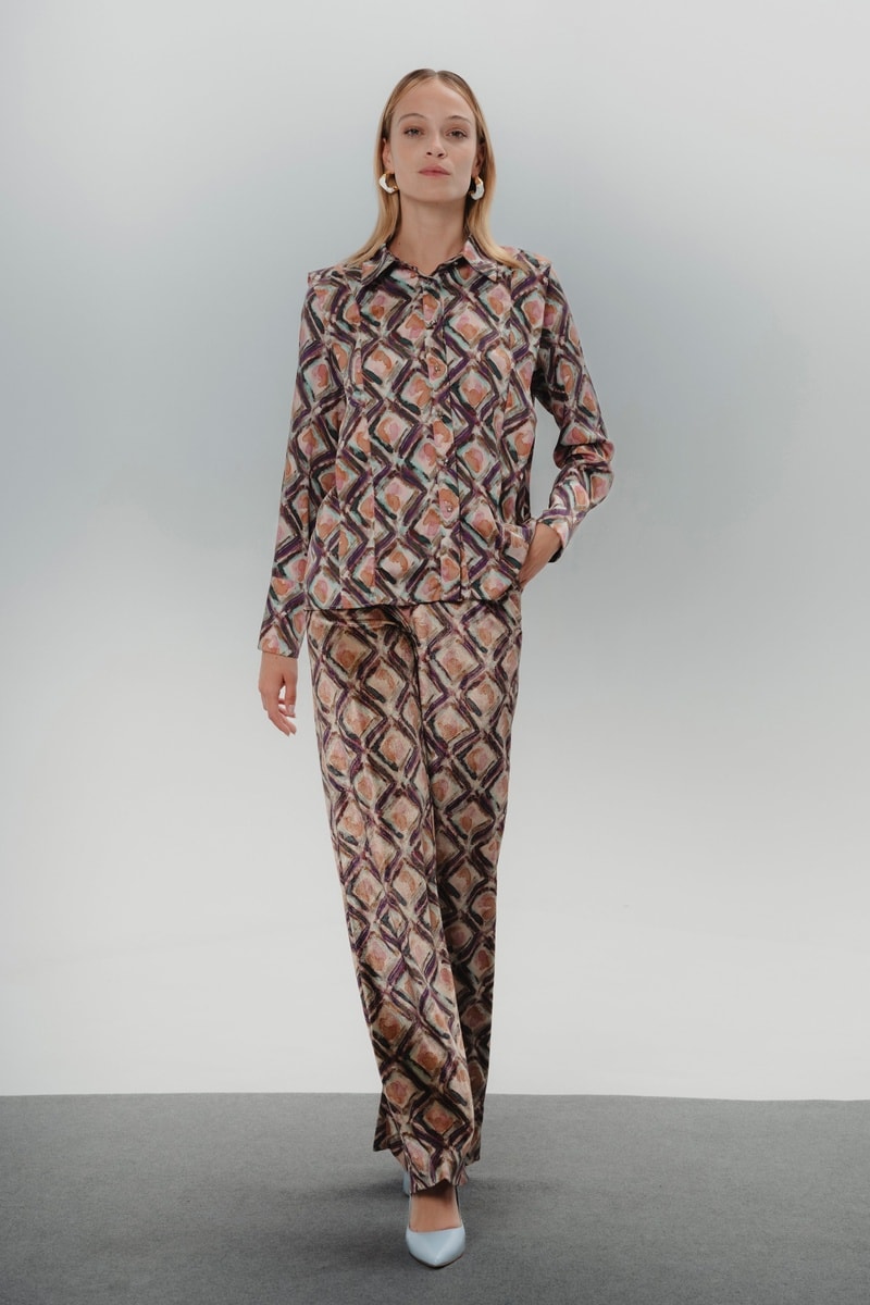 O modelo mede 1 m 77 e veste o artigo no tamanho 36 - XS.