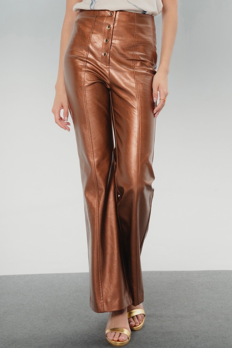 Calças de cintura alta - Dourado