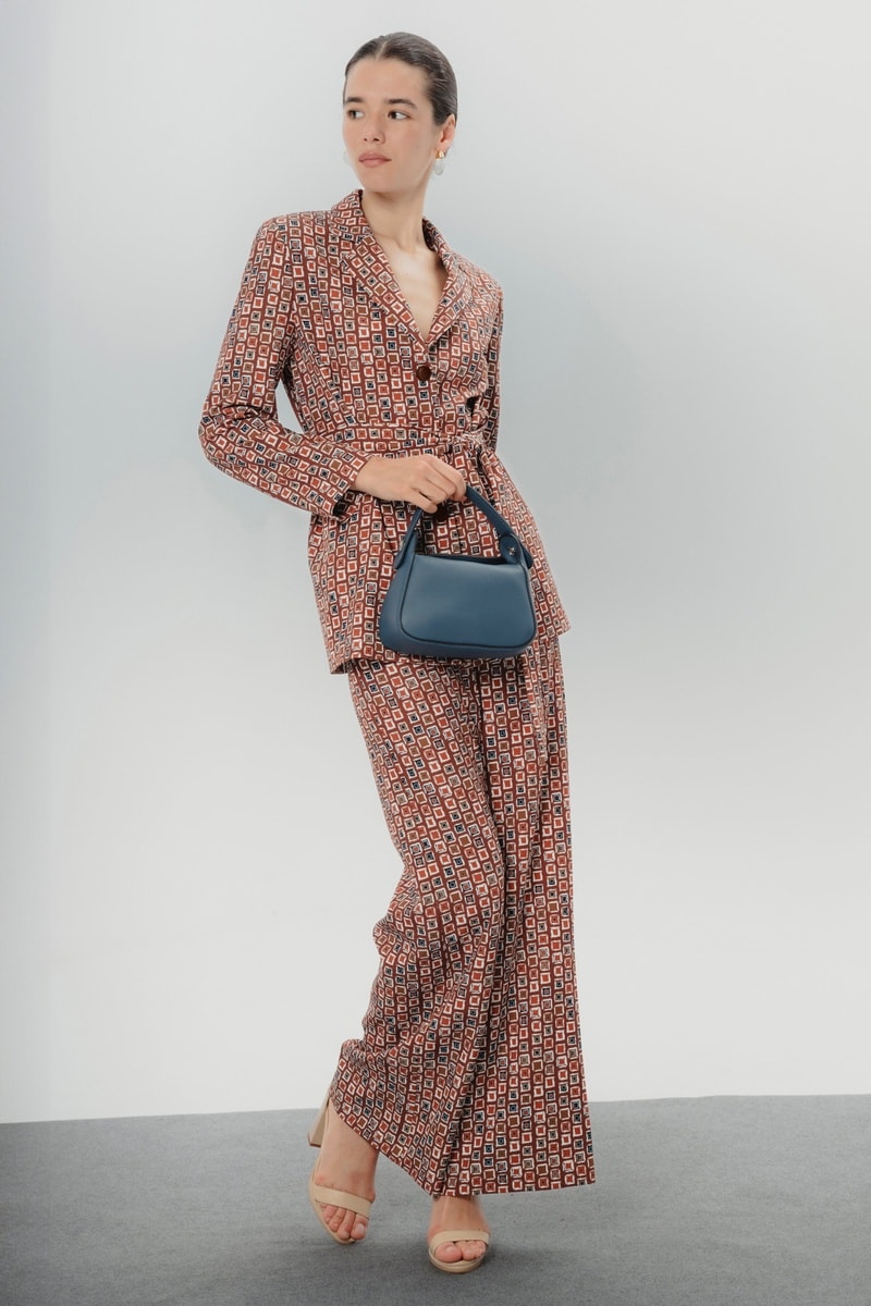 O modelo mede 1 m 77 e veste o artigo no tamanho 36 - XS.