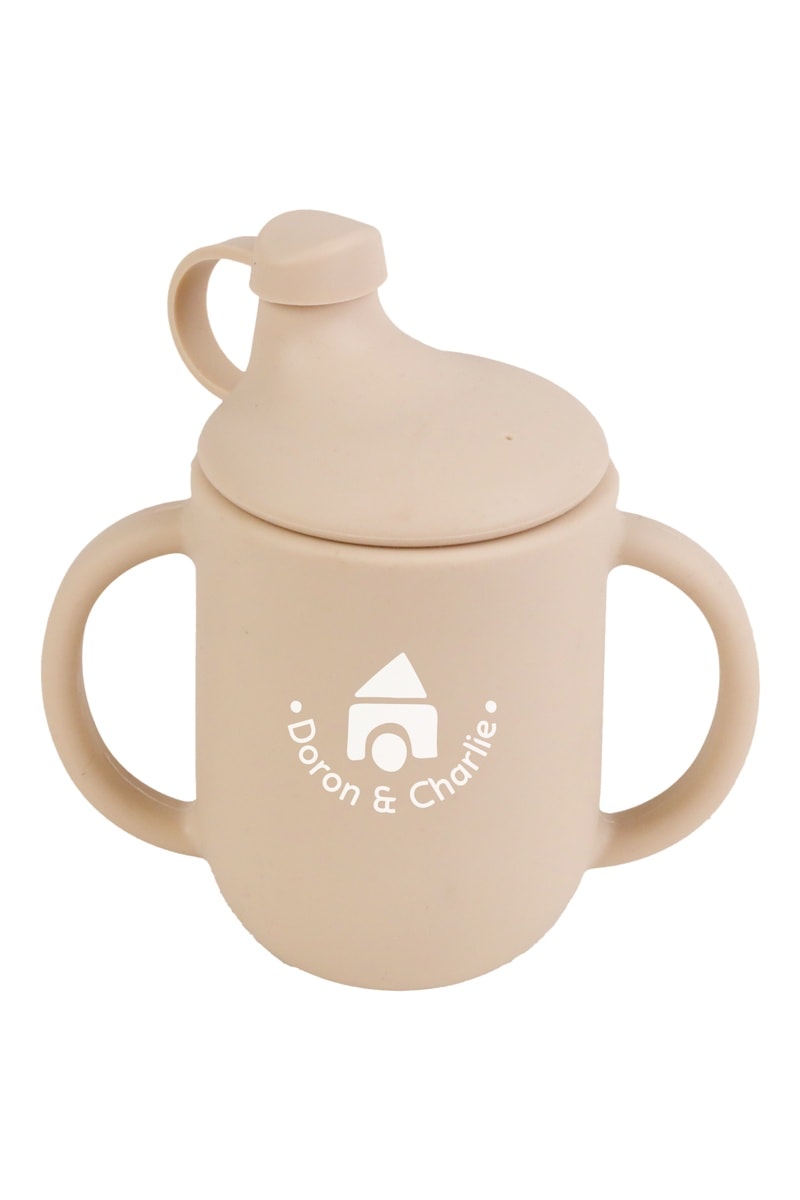 Copo de aprendizagem em silicone sem BPA com tampa e bico.