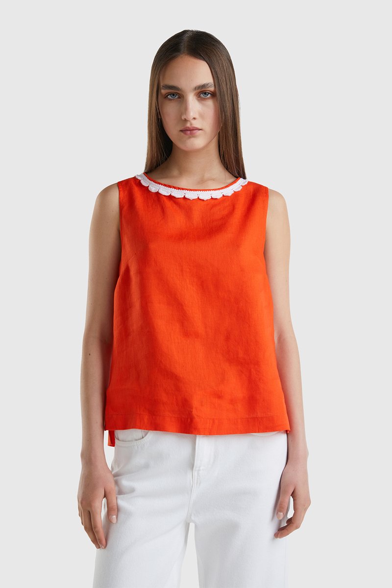 Top de linho sem mangas - Laranja