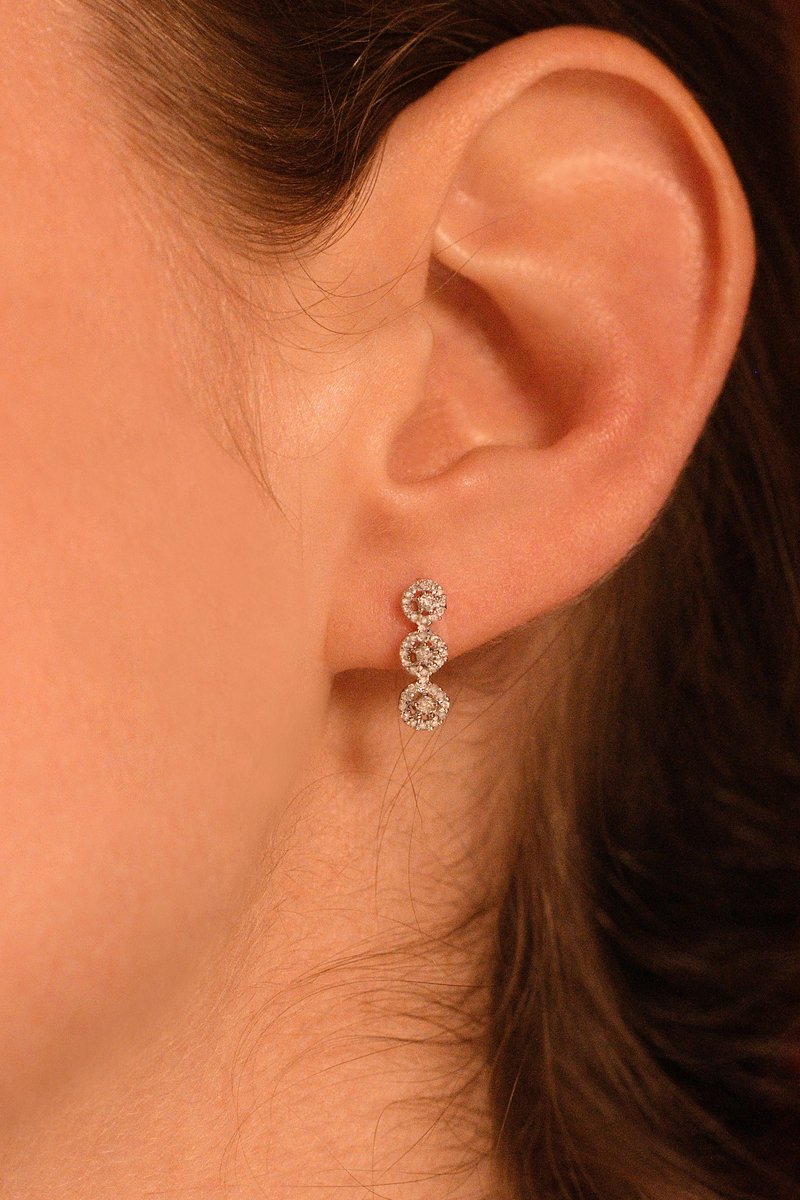 Brincos pendentes de ouro brancocom 39 diamantes.