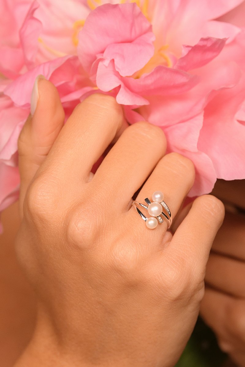 Anel Kawai - Ouro branco, diamantes e pérola de cultura