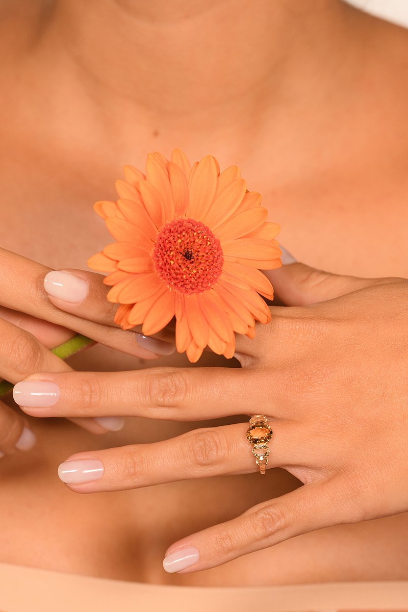 Anel Yellow Hill - Ouro amarelo, quartzo citrino e quartzo