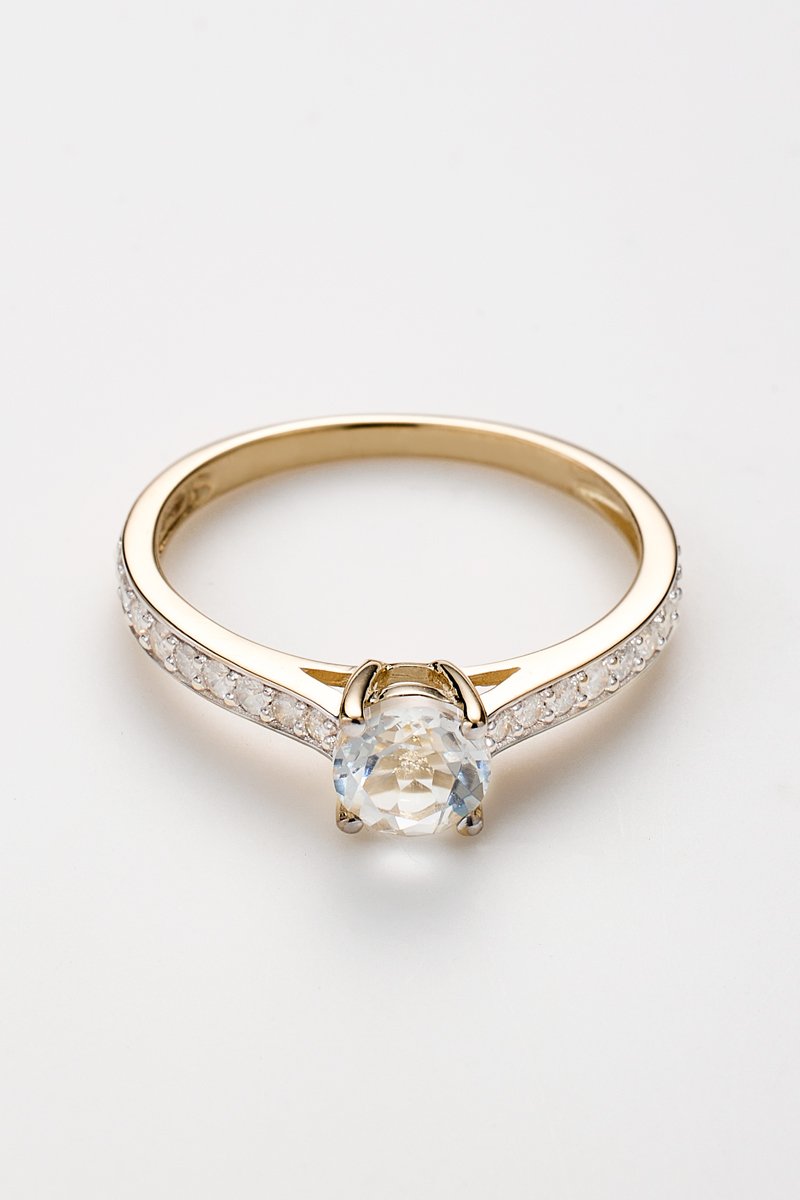 Anel Héra - Ouro amarelo, diamantes e topázio branco